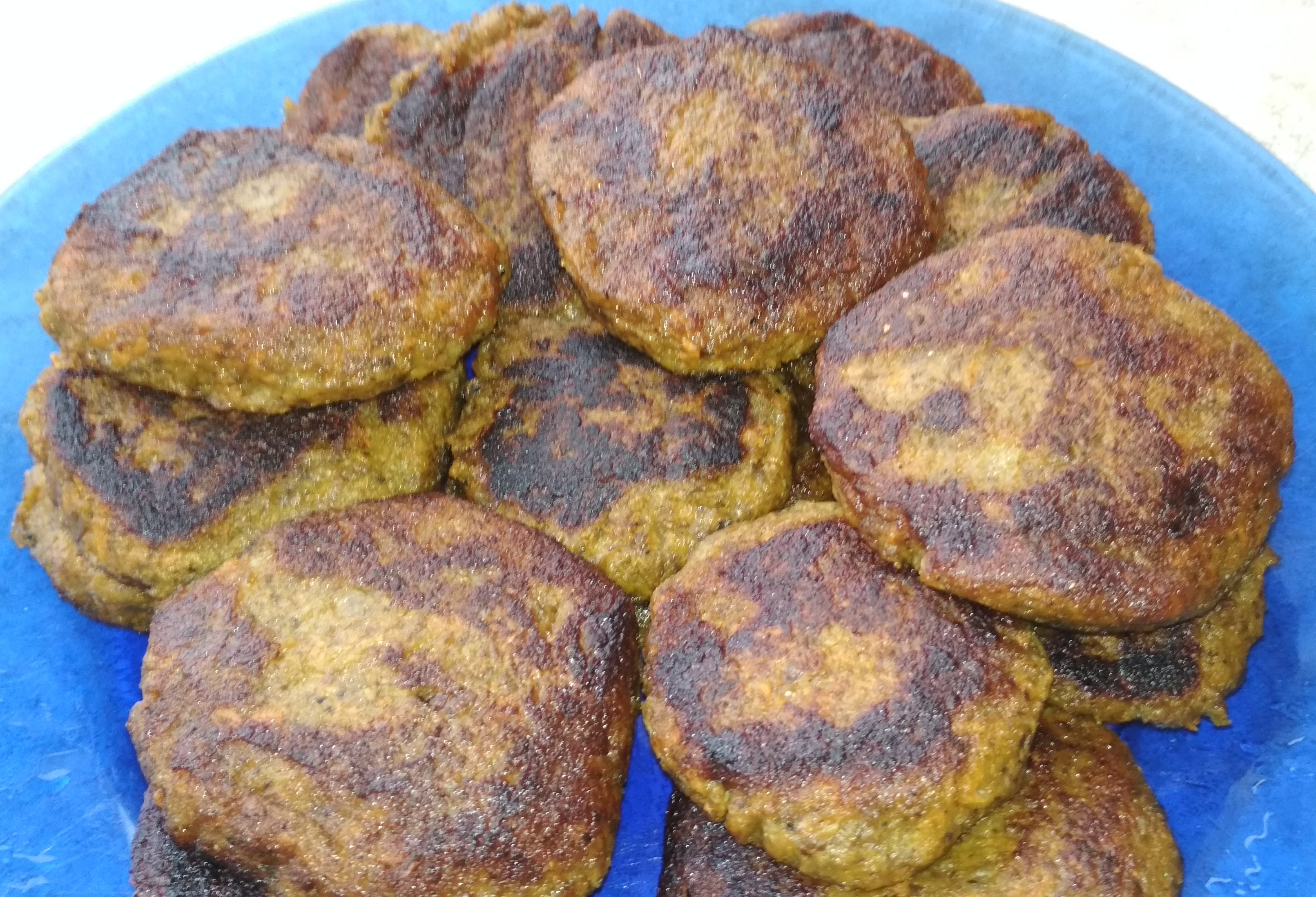 3 небольших баклажана 30 г твердого сыра 1 ст л манки 1 ст л муки Соль Чеснок Зелень (петрушка, укроп) Черный перец молотый Баклажаны обрезать хвостики и запечь в микроволновке на 850 Вт - 10-15минут. Размять вилкой. Потереть сыр на мелкой морковной терке, порезать зелень, добавить черный перец, чеснок, соль. Сформировать маленькие котлетки, обвалять в муке, обжарить.